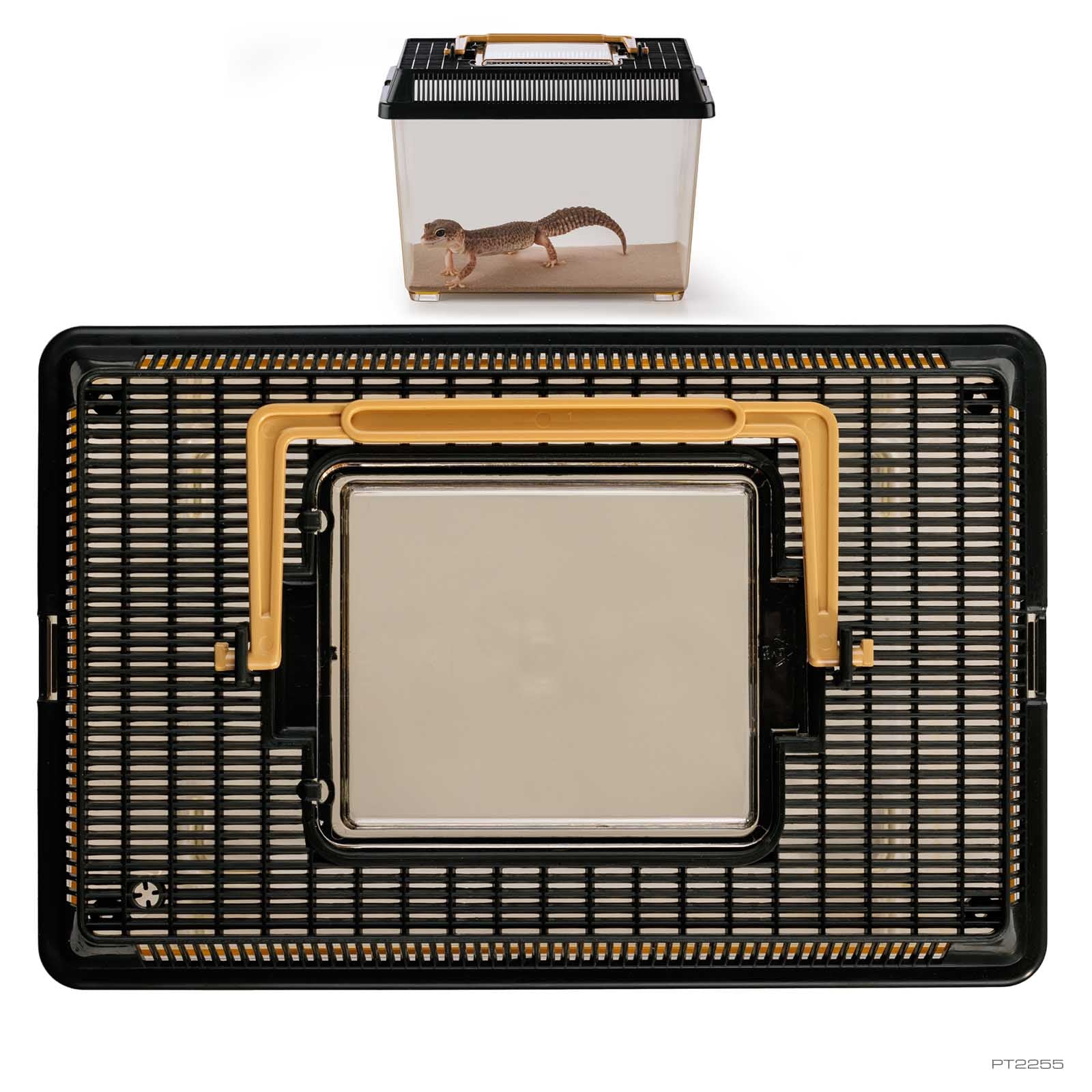 - Transportín Ideal: Perfecto para el transporte de animales que viven en terrario (pequeños reptiles, anfibios) o para mover alimento vivo (como grillos o tenebrios) de forma segura.